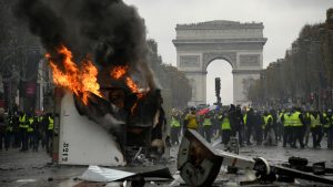 جیراڵد دارمانان وهزیری ناوخۆی فهرهنسا ئاشكرای كرد دروستبوونی توندوتیژی لهمیانهی خۆپیشاندان و مانگرتنهكانی پێنجشهممه كه به پێنجشهممهی ڕهش ناسراوه، سهرهڕای زیانه ماددییهكان، كوژران و برینداربوونی لێ كهوتووهتهوه. وهزیری ناوخۆی فهرهنسا ڕایگهیاند بههۆی توندوتیژییهكانهوه 903 ئاگر